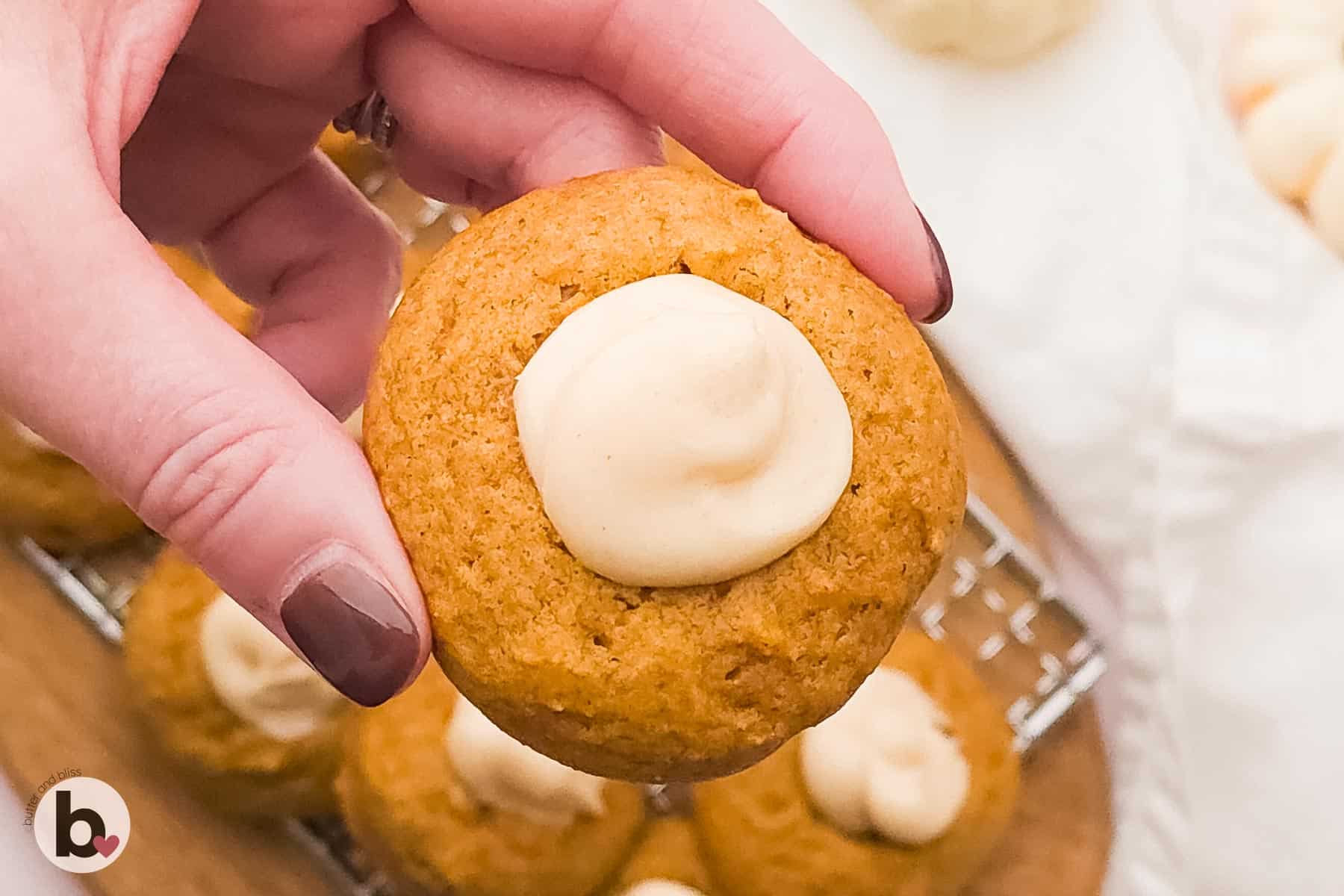 Why? Because the center well that holds the creamiest cream cheese frosting adds all the sweet you need. So what you have is a perfectly balanced cookie that can only be compared to pumpkin cheesecake in cookie form.