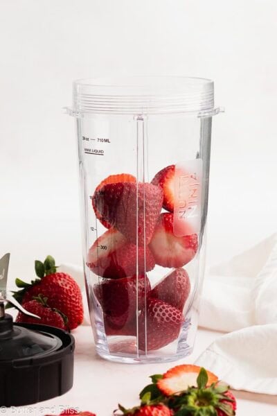 Blitz the strawberries in a small blender until smooth (my Nutri-Bullet is a favorite for small batches), and if you’re not a fan of seeds, strain the puree before cooking.
